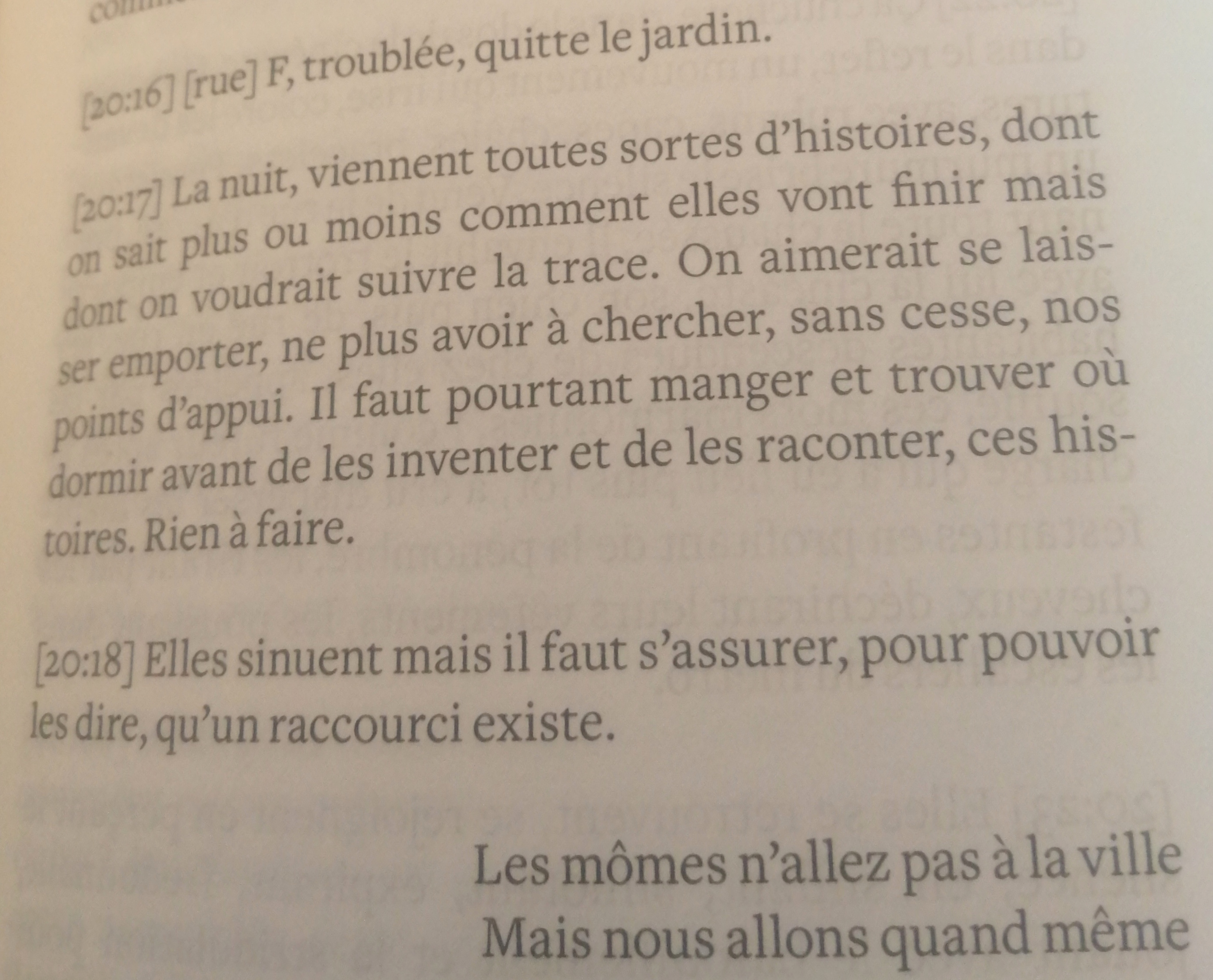 et puis il y a la texture politique du texte, pas politique au sens d’engagement partisan et démonstratif, mais politique au sens de social élargi, qu’est-ce qu’une fillette, une femme, que font les hommes, fuir, attraper, confisquer, abandonner, ce sont leurs actes bruyants ou silencieux qui décrivent la façon dont on vit