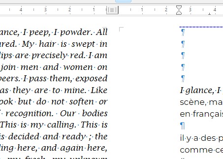 Enfin, ça y est, j’ai trouvé le format et l’agencement de mon Journal de traduction des Vagues, ce qui me donne le sentiment d’une joie tranquille, longue, étirée. Maintenant, c’est le "vrai" travail de mise en page, et pas l’aménagement tâtonnant que je tentais jusque-là. Ce ne sera pas mon journal en intégralité, je reprends, je sélectionne, je me débarrasse, j’élague, je reformule des extraits du JDBDV pour qu’ils tiennent et s’agencent dans ce nouvel emballage, un livre concret. Maintenant que je sais où aller, je peux réellement travailler. Ce n’est pas une mise en œuvre mécanique ou logistique, parce que les extraits que je garde me font redécouvrir des tensions et des lignes de force qui m’étaient sorties de la tête. Je pourrais me sentir fière de moi, mais ce n’est pas vraiment le cas, par contre je sais que je vais, que je dois le faire, Ceci n’est pas un exercice, comme dirait l’autre. J’ai aussi maintenant des idées pour la couverture. Il faut qu’elle soit assez rigide, parce que mes pages n’auront pas la même épaisseur, il y aura des plis, des rabats d’un côté et pas de l’autre, la reliure va devoir rééquilibrer l’ensemble. Vu le matériel dont je dispose, je me demande si je ne partirais pas sur du papier recyclé (ça fait très longtemps que je n’en ai pas fait, j’aimerais y remettre les mains). Et ce sera tout. Mes trois projets autour de VW auront vu le jour (le livret Kg, le livre-Vagues et le Journal). Quand toute cette activité sera derrière, je pourrai me poser la question : qu’est ce que je vais traduire maintenant ?