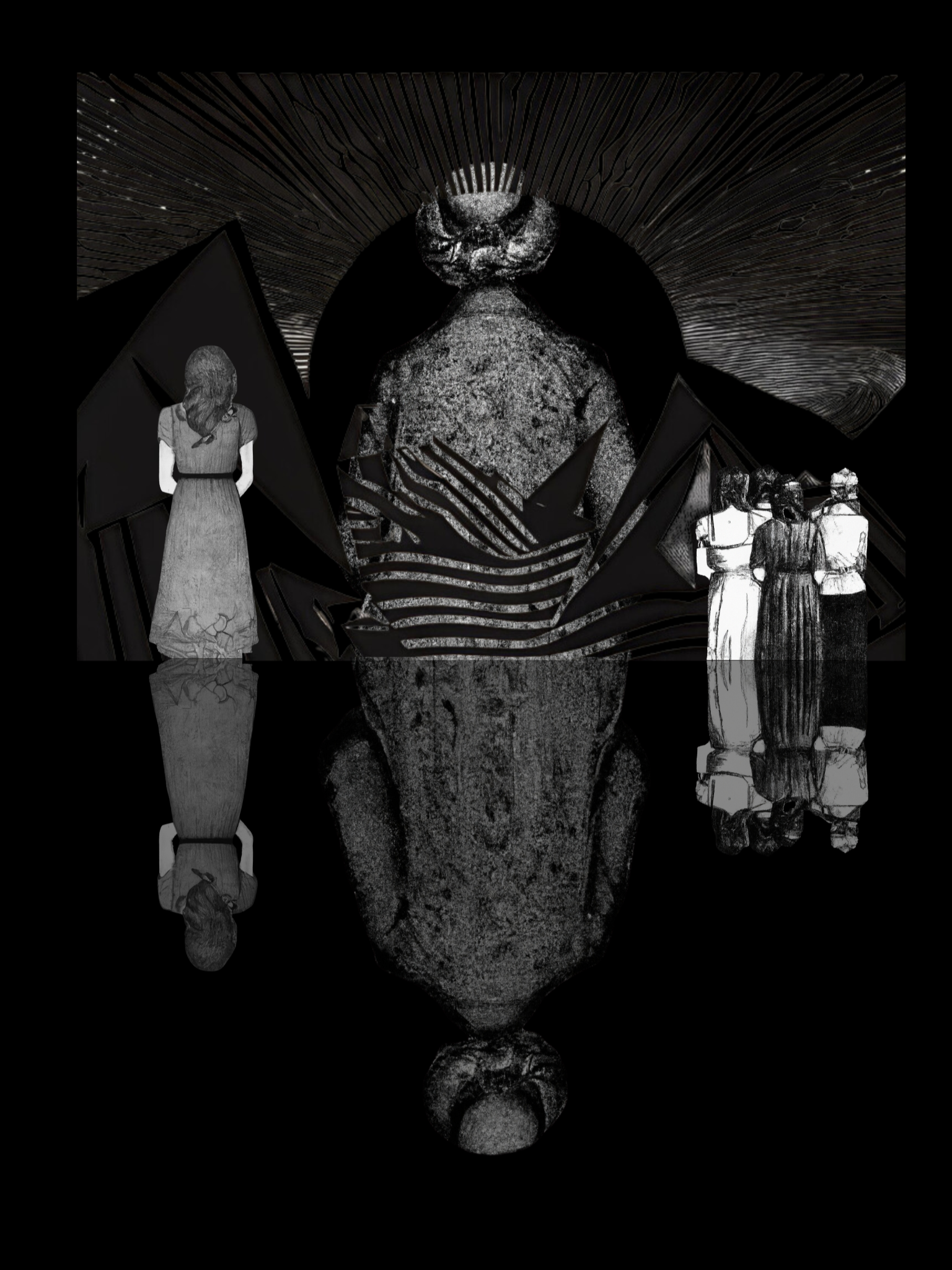 De veillée en veillée nous vieillissions à vue d’œil. L’une après l’autre, régulièrement, noircissant la feuille d’un âge avancé. Nos doigts couverts de la suie d’un foyer timide. Nos peaux de feuilles pliées sous un voile d’ombres de plus en plus anciennes. Nos bouches et nos ventres de chapelles abandonnées sous un châle. Nous étions pâles et éclairées par les braises. Certaines couchaient au sol et d’autres dans les travées. Beaucoup dormaient quand quelques-unes disaient encore. C’était habiter la parole que d’écouter Reveka chuchoter ses contes. Elle qui était toujours la dernière à dormir et qui disait encore quand quelques-unes s’éveillaient pour les champs.