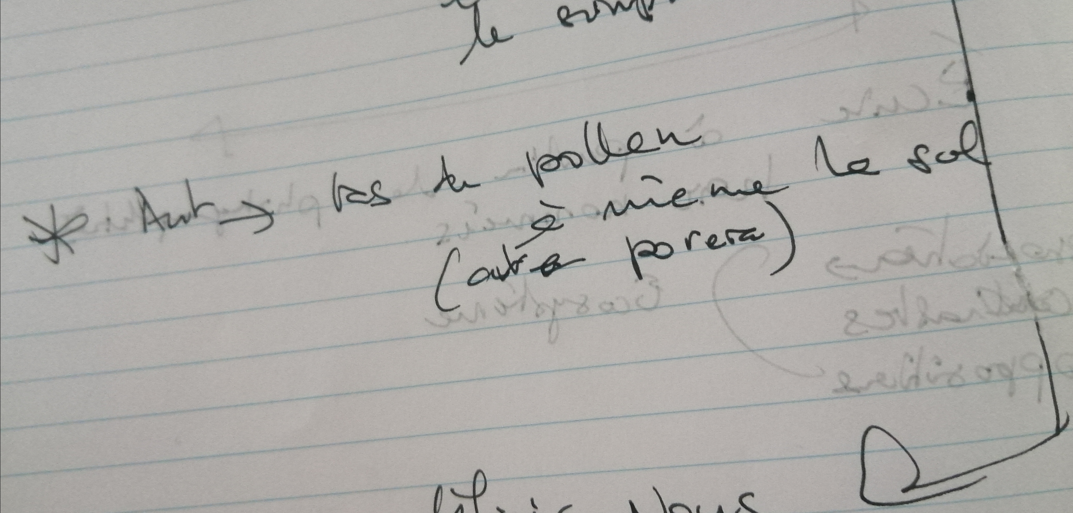 Je ne le fais pas exprès, dans ce que j’écris (en dehors de ce block note) le pli revient, à plusieurs niveaux. D’abord comme un glissement, un pli pas tout à fait raccord entre ce que je cherche et ce que je fais, par exemple noter dans un carnet des mots (qui devaient être des thèmes, des voies, des pistes) et ne pas réussir à me relire. J’ai dessiné une sorte d’étoile, signe que c’est important, et j’ai écrit * Aut → tas de pollen / à même le sol / (oute porera). C’est comme si j’avais mal plié mon feuillet a4 pour fabriquer mes signatures du livre-Vagues et qu’un décalage apparaissait, qui allait s’amplifier au pli suivant, et encore, jusqu’à un glissement obligatoire, constant, inévitable. Ensuite, après les plis entre soi et soi, il y a les plis entre soi et le reste, les autres qui se démènent comme ils peuvent, par peur ou par colère. Ça prend des proportions, un millimètre après l’autre. L’idée de retrouver le pli premier, et de ne pas le rater, est un peu fantasmagorique, ce n’est peut-être pas possible. Il y a une scène très perturbante dans The Square (film sur lequel j’ai quelques réserves), une performance d’artiste au cours d’un repas de gala, nœuds-papillon robes de soirée champagne et tablées élégantes, et l’artiste qui y entre et se comporte en animal sauvage. Il provoque la sidération, et le public bien éduqué, venu pour voir de l’Art, est prêt à l’applaudir, à approuver ce qu’il dénonce de l’incapacité à digérer la sauvagerie. Mais l’artiste ne veut pas s’arrêter là. On l’applaudit, merci, et, comme un pli raté, il continue, il persévère dans la sauvagerie. Il devient dangereux, À l’aide, aidez-moi, demande une femme sur laquelle il se penche, puis qu’il tire par les cheveux. On commence à intervenir, d’abord un invité, puis un autre, et plusieurs qui lui tombent dessus à coups de poing et qui disent Tuez-le. Qu’est-ce qu’on accepte et pourquoi, par quelles bassesses médiocres pétries de peur ou de colère, voilà le pli. Qui se replie avec le fait que le film a reçu une palme d’or. Ce qu’on accepte et qui devient lissé, poli, le trophée qui repasse le pli, la phrase sûrement prononcée "je vous remercie pour ce prix" efface le pli, et le Aidez-moi comme le Tuez-le sont placés dans une boîte aseptisée, à examiner au calme confortablement, ou plus probablement à oublier. Ce qui résonne avec le dévoilement que fait point par point Chatonski, mais je ne saurais pas dire pourquoi, je sens juste que c’est lié. Ça a quelque chose à voir avec l’autoprotection, la cécité, la volonté d’être aveugle et/ou d’aveugler, Il y a des plis informes qui font qu’on ne comprend plus ce qu’on construit, et ensuite c’est trop tard. J’oscille entre m’occuper des plis autour, de leurs violences graduées, diversifiées, et me limiter à mes propres plis, déjà nombreux. Mon vieux cerveau binaire s’arrange toujours pour me donner le choix entre deux voies possibles (plis autour | plis dedans), alors que la réponse est peut-être plus diffuse et intriquée, c’est peut-être pour ça que je n’arrive pas à me relire.