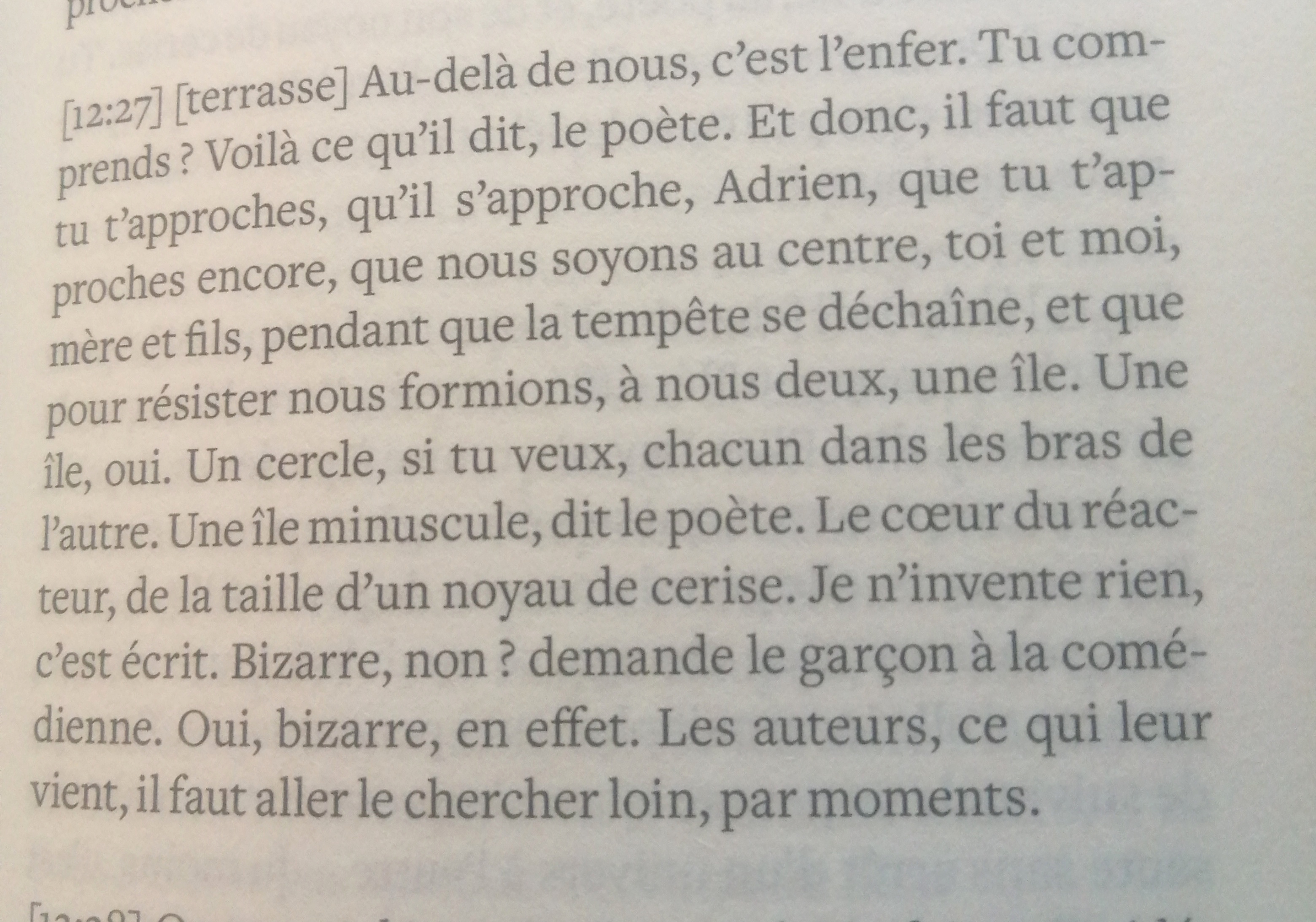 ce qui m’impressionne, et que je n’ai jamais lu ailleurs, c’est l’effet de zoom et de dézoom, cette distance avec l’écriture toujours plus proche ou prenant le large pour mieux voir l’ensemble