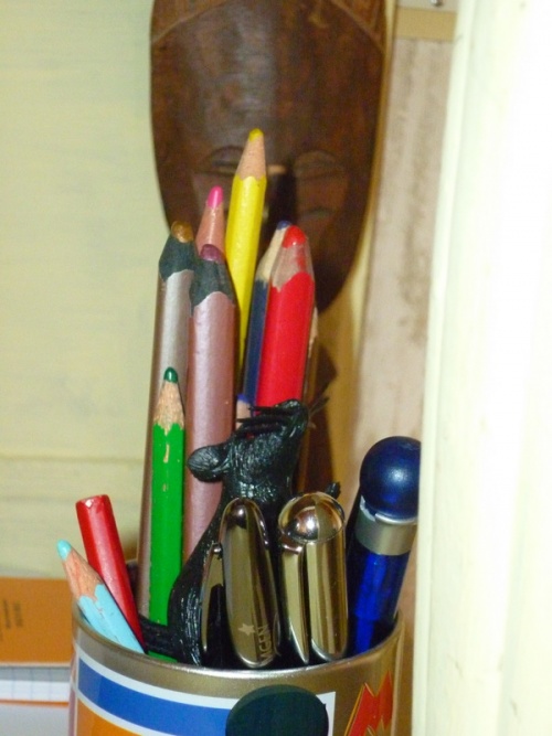 jour _ écrire c’est ma vocation, alors me placer dans le pot à crayons ; ne pas bouger, ne pas baver et rester droit et disponible et qui sait si, un jour, une main amicale me saisira, Il suffit d’une main que l’univers vous tienne à ce qu’il paraît