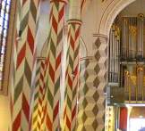 l’église à Göttigen, ses colonnades habillées de pantalons arlequin