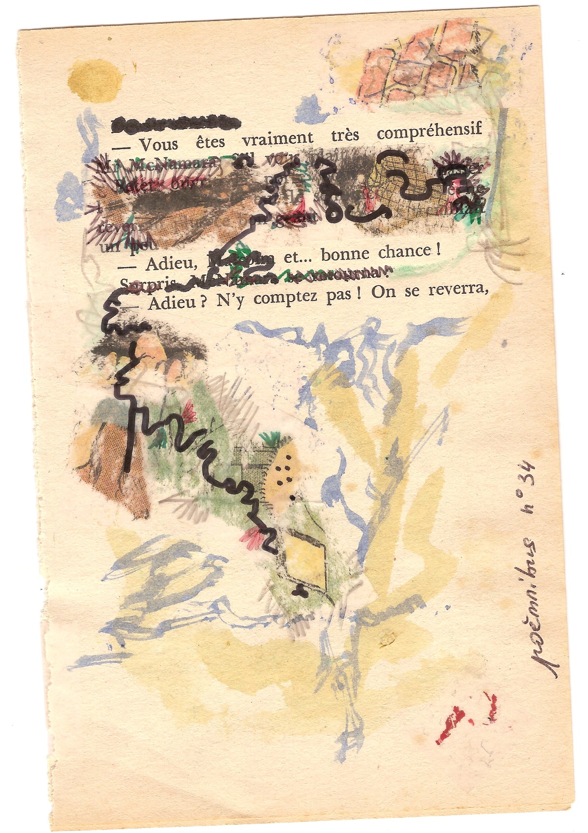 poème de 4 pages, format poche, caviardécoré scotché