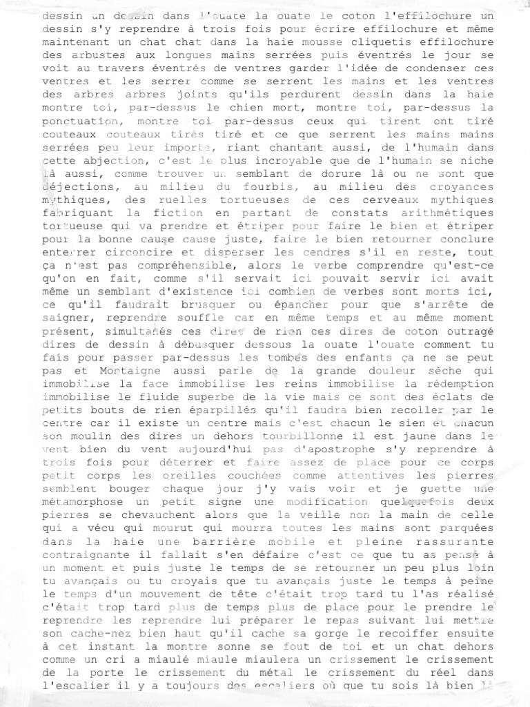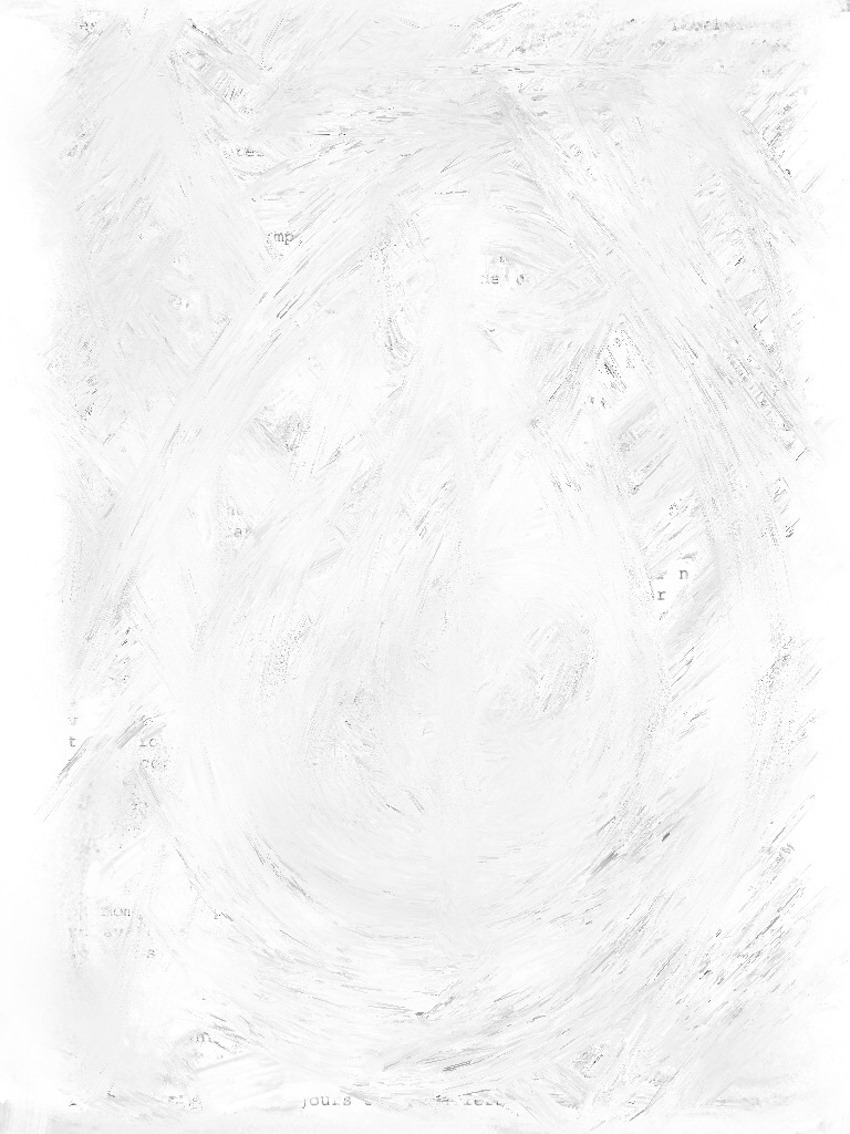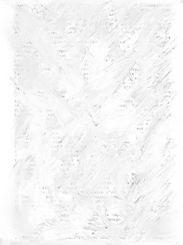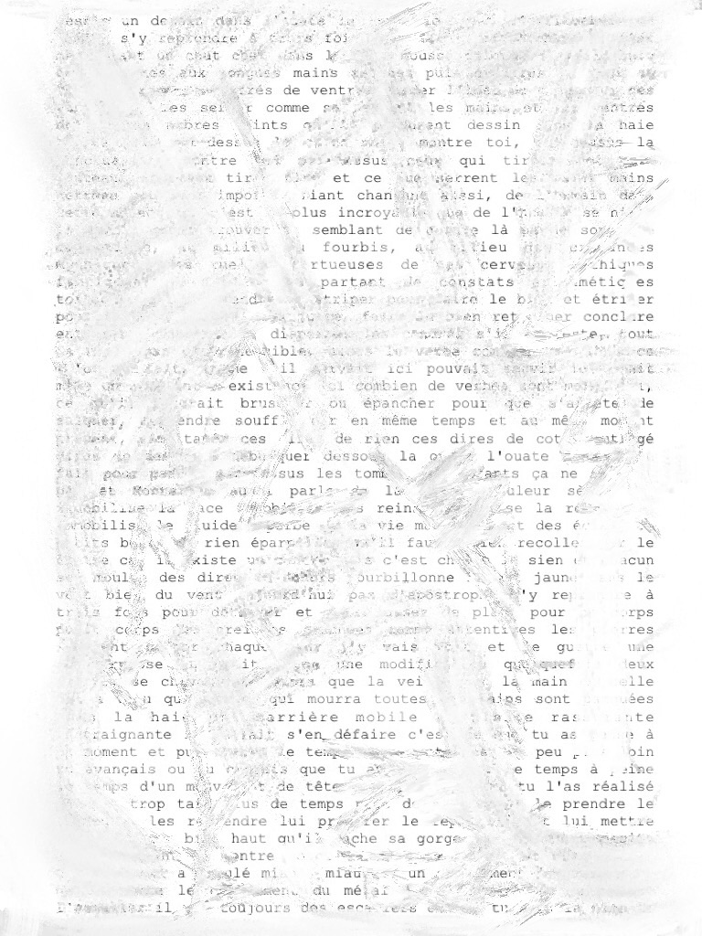 alors le verbe comprendre qu’est-ce qu’on en fait et en même temps ce blanc sur ce noir sur blanc c’est exactement ça... cet enchevêtrement de traces blanches ne gomment rien elles recouvrent ce qui ne peut se dire...