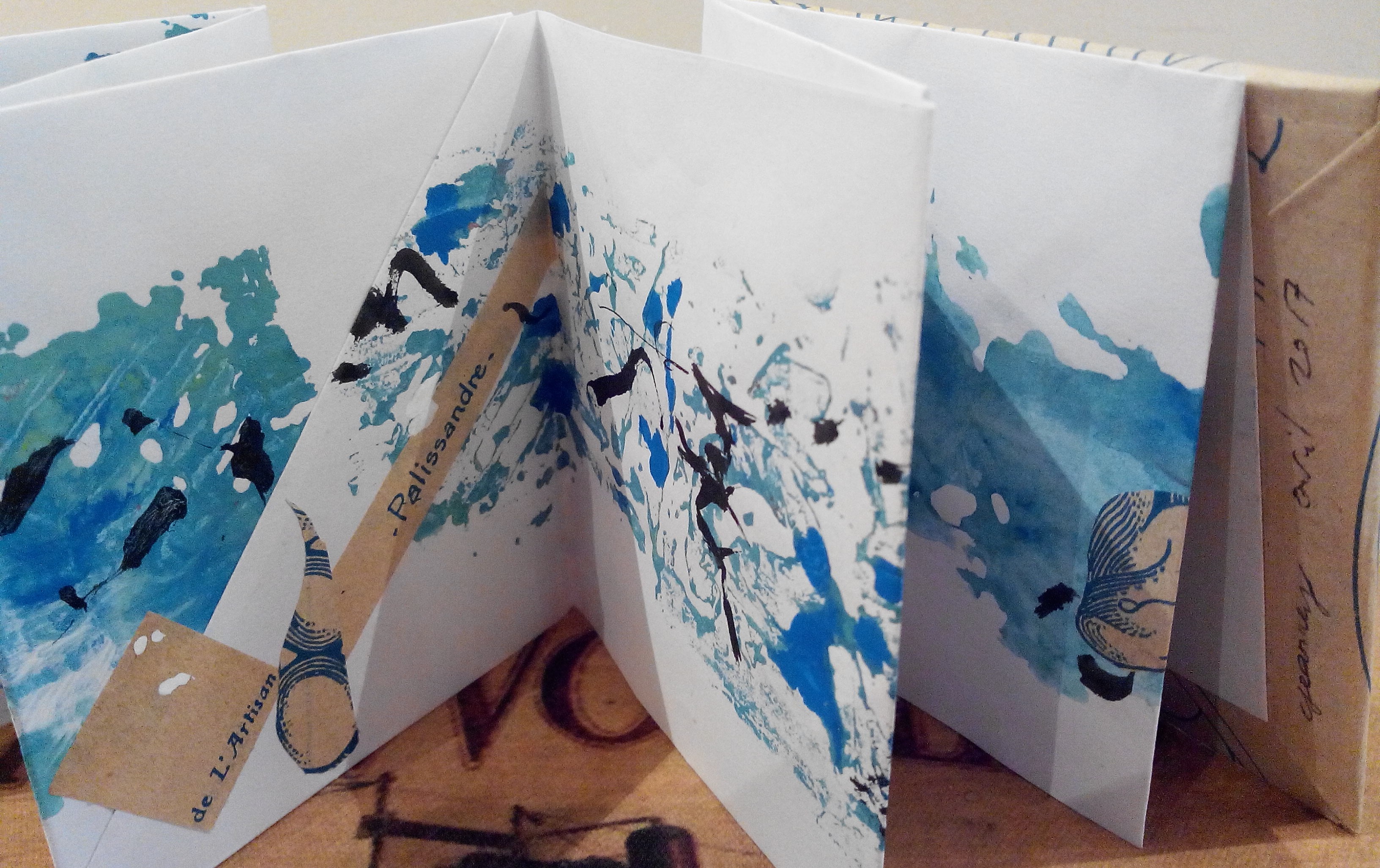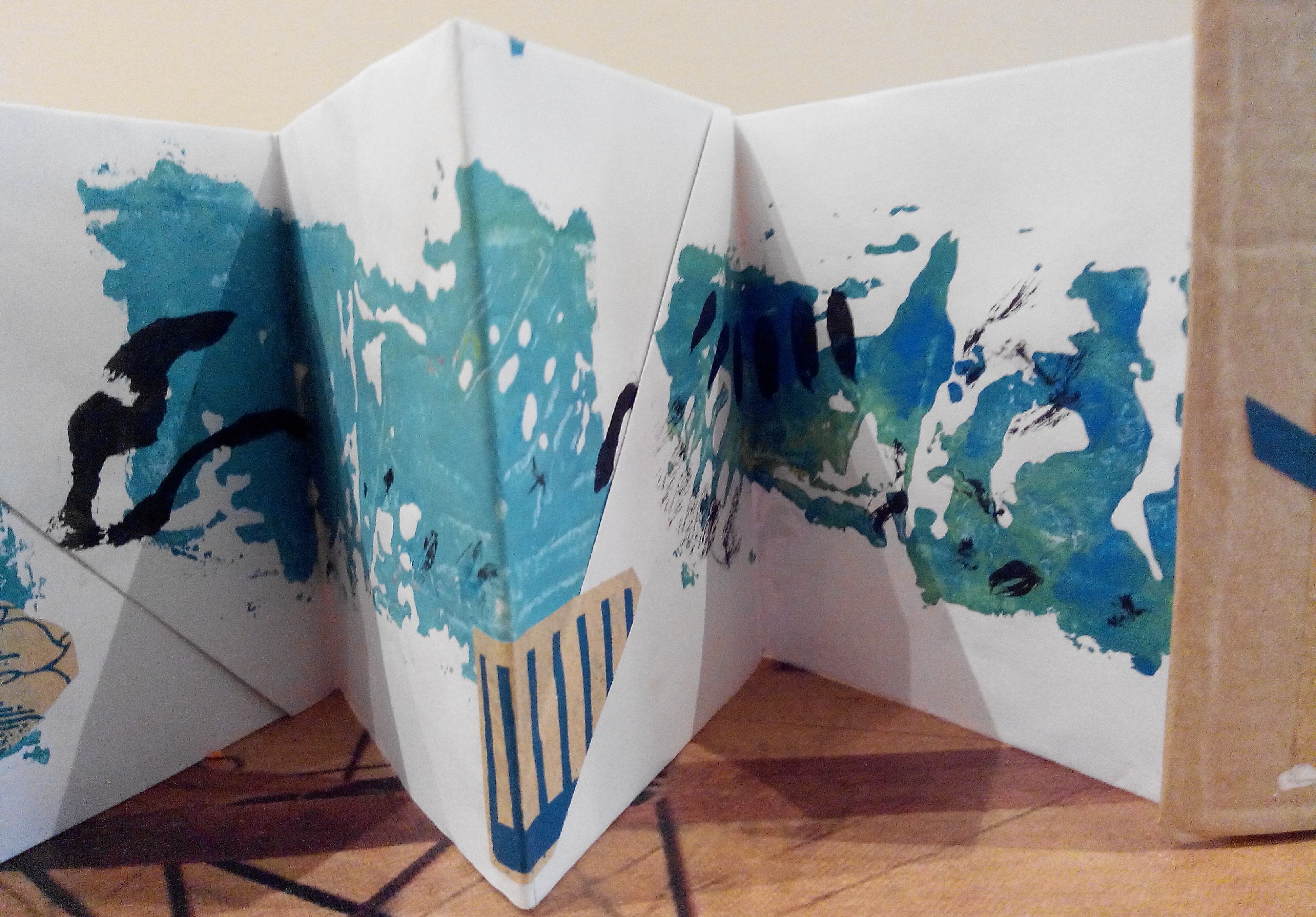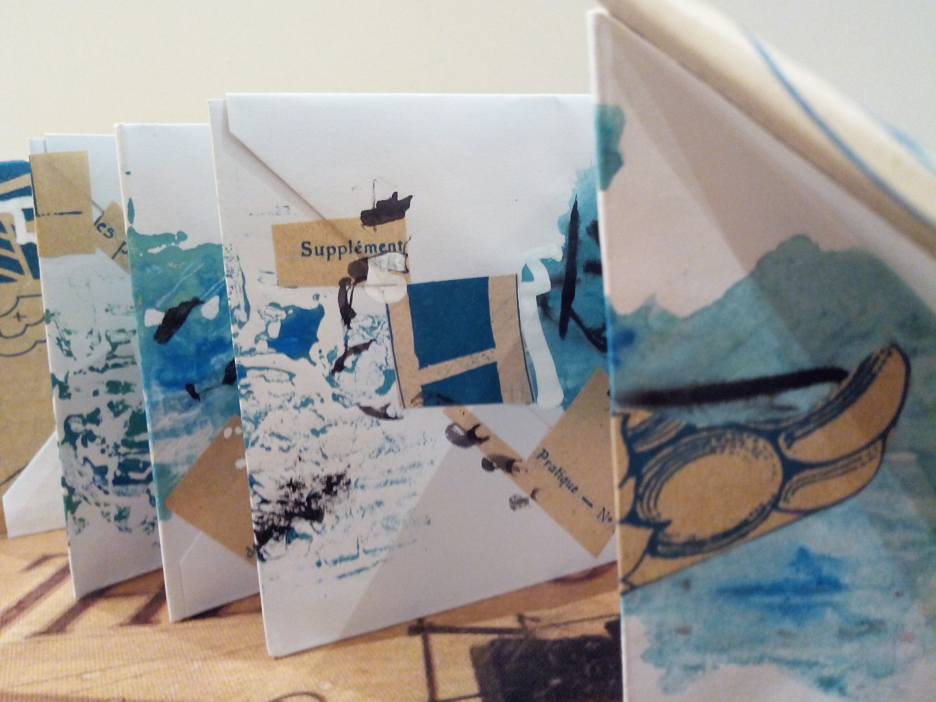 carton marouflé / impressions collagraphie / encre de chine / collages de patron ancien / pliage