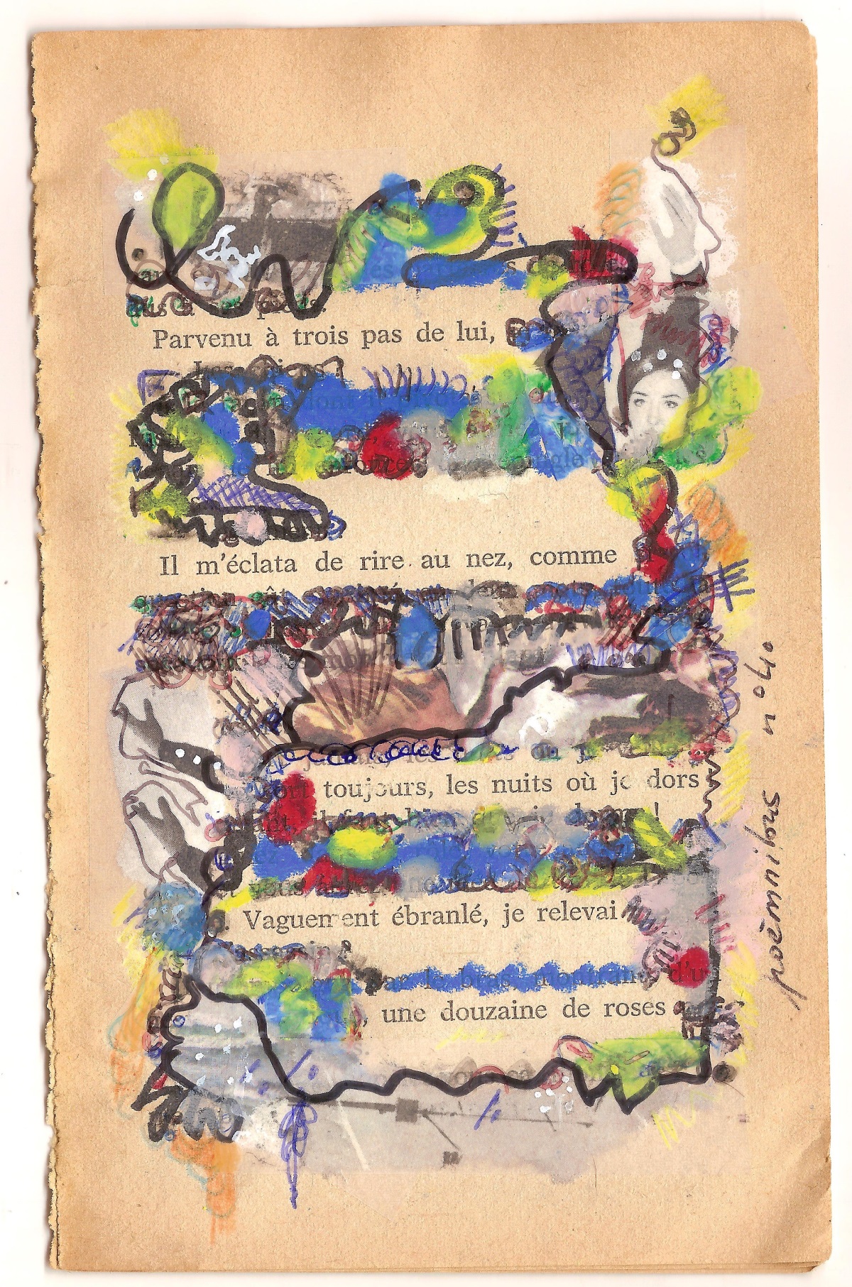 poème de 4 pages, format poche, caviardécoré scotché